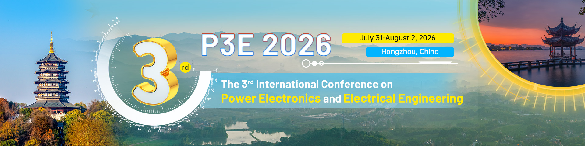 The 3rd International Conference on Power Electronics and Electrical Engineering (P3E 2026) will be held in Hangzhou, China from July 31 to August 2, 2026. This conference mainly focuses on the fields of 'power electronics' and 'electrical engineering'. It provides an international platform for experts, professors, scholars and engineers from universities, scientific research institutes, enterprises and institutions at home and abroad to share professional experience, expand professional networks, exchange new ideas face to face and display research results. The purpose is to explore the key challenges and research directions faced by the development of this field, in order to promote the development and application of theories and technologies in this field in universities and enterprises, and also to establish business for participants.